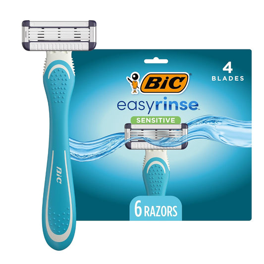 One 6-count pack of BIC EasyRinse Sensitive Anti-Clogging Men's Disposable Razors clinically proven for sensitive...