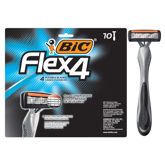 One 10 piece BIC Flex 4 Titanium Razor Kit for Men contains 10 disposable men's...