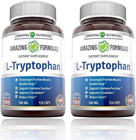 Amazing Formulas L-Tryptophan 500 Mg Capsules Supplement | Non-GMO | Gluten Free | Made in...
