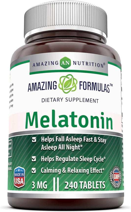 Amazing Nutrition Melatonin 3mg 240 Tablets Supplement | Non-GMO | Gluten Free | Made in...
