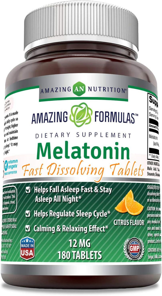 Amazing Formulas Melatonin 12 Mg 180 Tablets - Helps Fall Asleep Fast, Regulate Sleep Cycle...