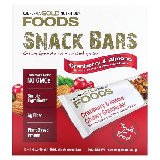 California Gold Nutrition Cranberry and Almond Chewy Granola Bars Made with Simple Ingredients: Ancient Grains,...