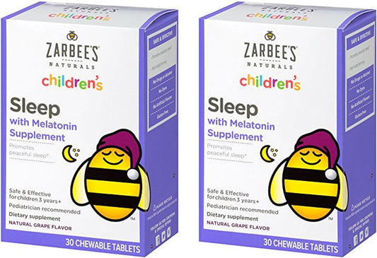 Zarbee's Naturals Children's Sleep Melatonin Supplement Chewable Tablets Grape Flavor - 30 ct, Pack of...