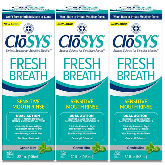 Dual Action - Closys Sensitive Mouthwash In Gentle Mint Flavor Instantly Attacks Mouth Odor Molecules...