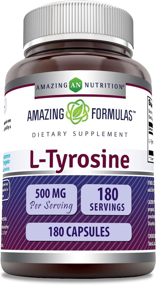- L Tyrosine 500mg Per Serving Supplement - 180 Servings per Bottle, 1 Capsule per...