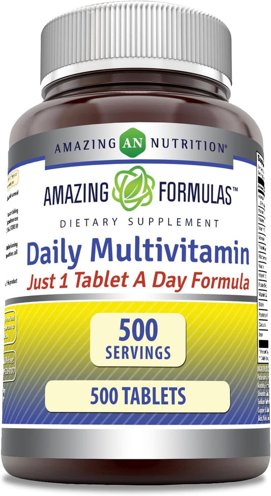 - Daily Multivitamin Supplement- 500 Servings per Bottle, 1 Tablet Per Serving- Non-GMO, Gluten Free,...