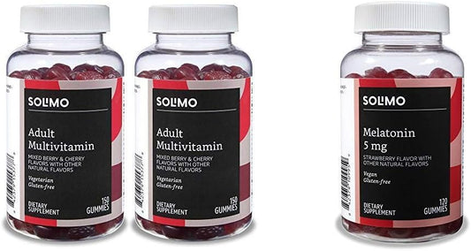 Contains 300 mixed berry and cherry flavored adult multivitamin gummies and 120 strawberry flavored melatonin...