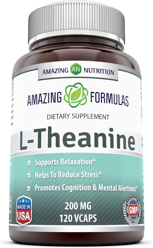 Amazing Nutrition L-Theanine Dietary Supplement * 200 mg Pure Veggie Capules * Promotes Relaxation and...