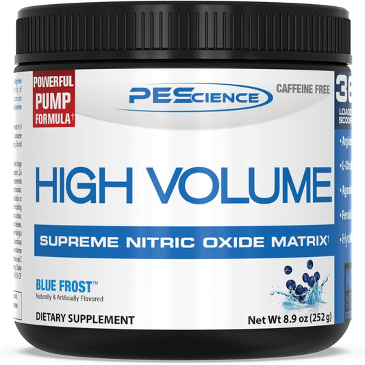 PEScience High Volume Nitric Oxide Booster Pre Workout Powder with L Arginine Nitrate, Blue Frost...