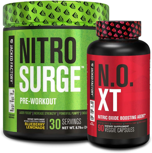 Jacked Factory Nitrosurge Pre-Workout In Arctic White & N.O. Xt Nitric Oxide Booster For Men & Women
