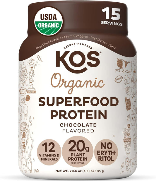 KOS Plant Based Protein Powder, Chocolate USDA Organic - Low Carb Pea Protein Blend, Vegan...