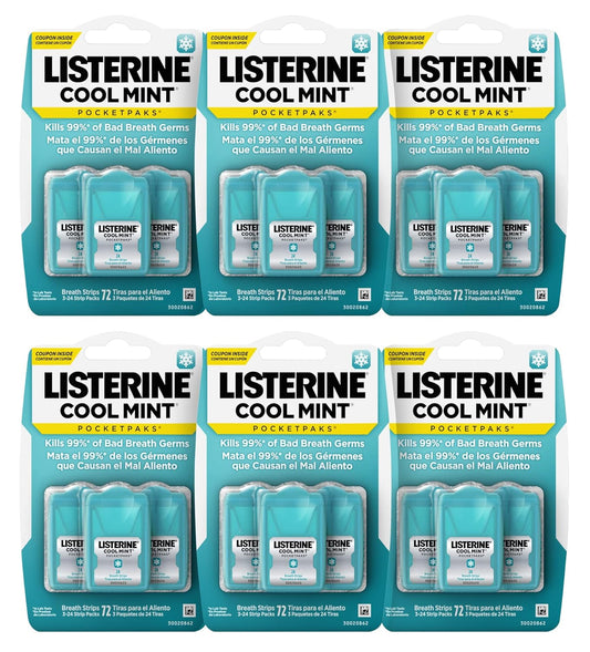 Pack Of 6, 3 Packs Containing 24 Strips Each Of Listerine Cool Mint Pocketpaks Bad...