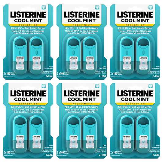 6 Count Of Two Sprays Of 7.7-Milliliters Each Of Listerine Pocketmist Cool Mint Sugar-Free Oral...