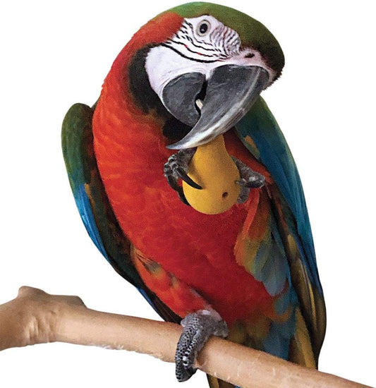 Three colourful chewable wood fruit shapes that your Parrot can chew on for a trim...