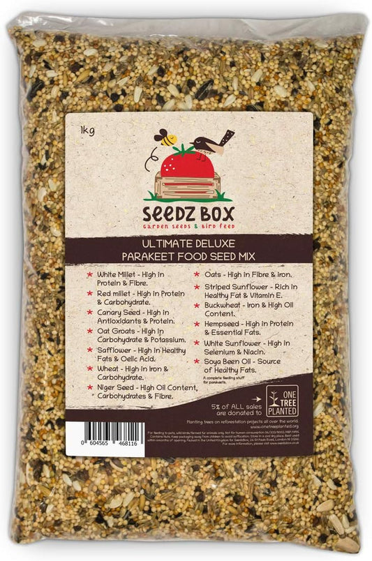 Parakeet Food - Seed & Nut Feed Mix 1kg - Seedzbox Deluxe Parakeet Food -...