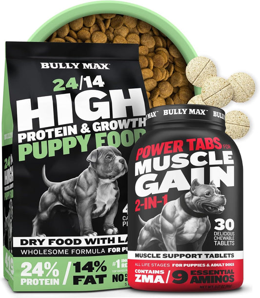 PUPPY FOOD AND CHEWS FOR GROWTH: This Bully Max Dog Food variant features 24/14 High...
