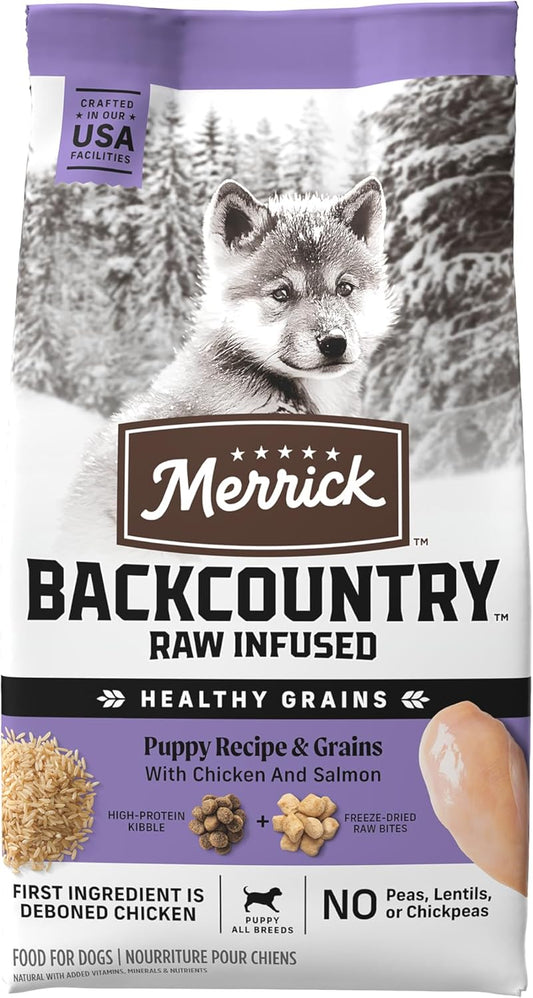 Merrick Backcountry Healthy Grains Freeze Dried Raw Pieces Plus Kibble Dry Puppy Food. Natural Kibble...