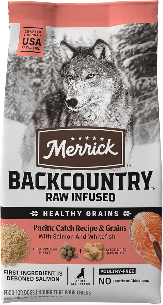 Merrick Backcountry Healthy Grains Dog Food, Pacific Catch Recipe With Salmon. Healthy Freeze Dried Raw...