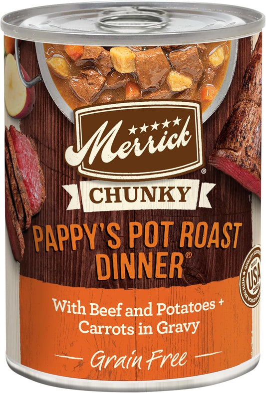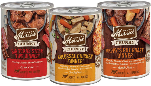 Twelve (12) 12.7 Oz Cans - Merrick Chunky Recipes Grain Free Wet Dog Food Variety...