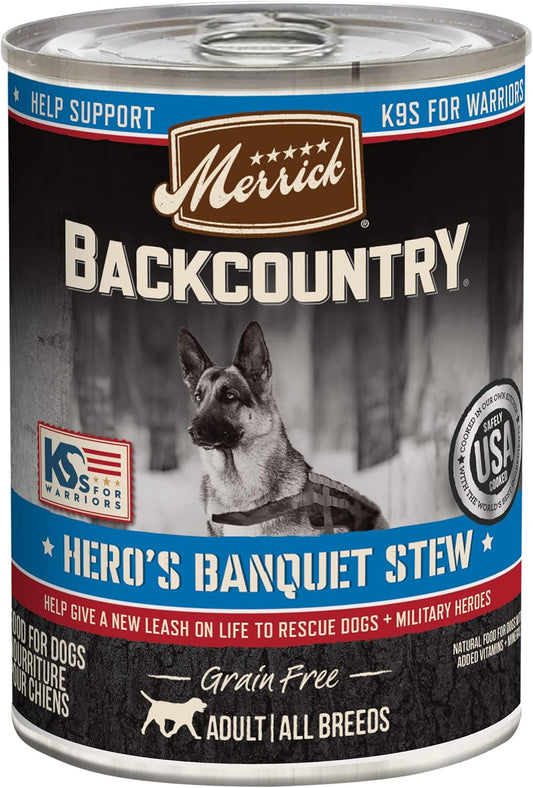 Merrick Backcountry Grain Free Hero’s Banquet Stew Recipe, Premium Soft And Healthy Canned Adult Dog...