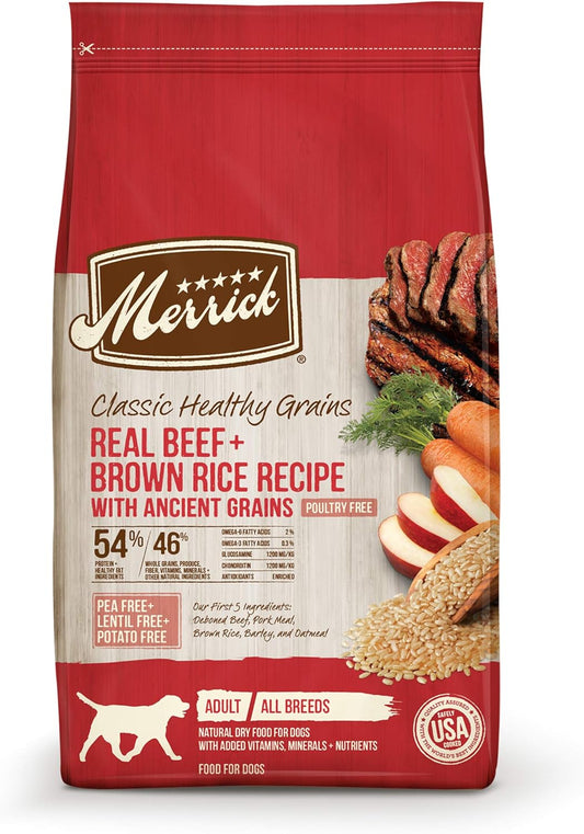 One (1) 12 Lb Bag - Merrick Classic Healthy Grains Dry Dog Food Real Beef...