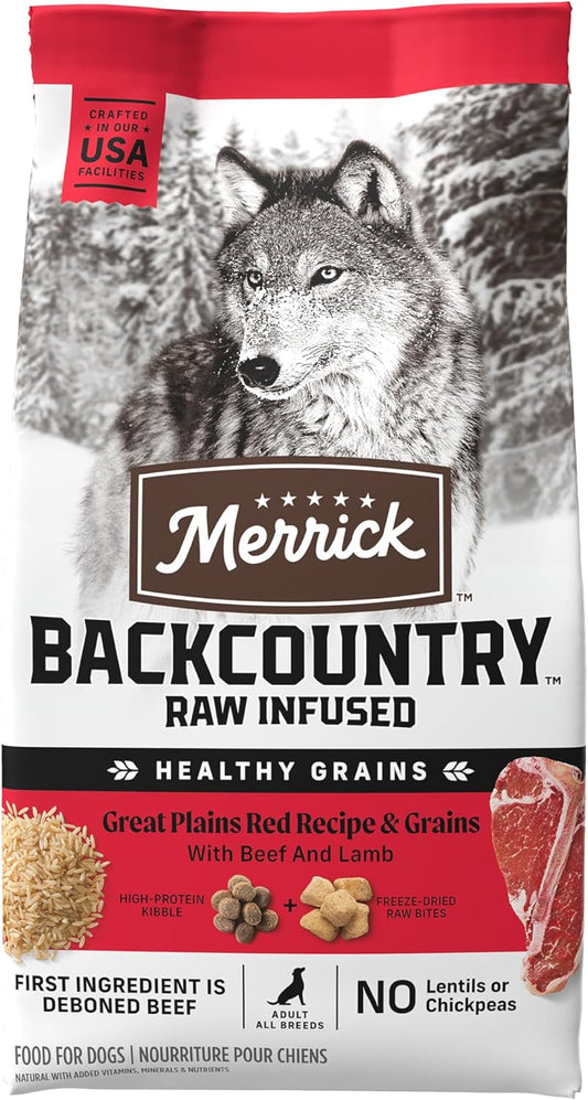 Merrick Backcountry Healthy Grains Freeze Dried Raw Pieces Plus Kibble For Dogs, Great Plains Red...