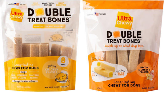 BUNDLE INCLUDES: Ultra Chewy Double Treat Bones - Favorite Flavors (2 Peanut Butter, 2 Bacon...