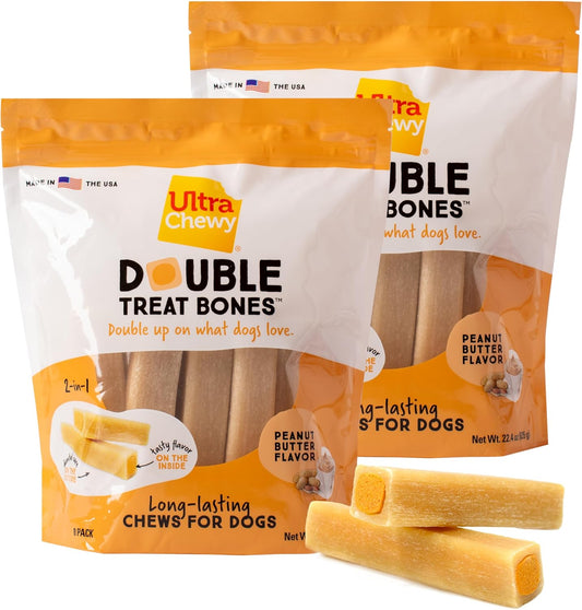 Bundle Includes: Ultra Chewy Double Treat Bones Peanut Butter Flavor (12 Pack) And Ultra Chewy...