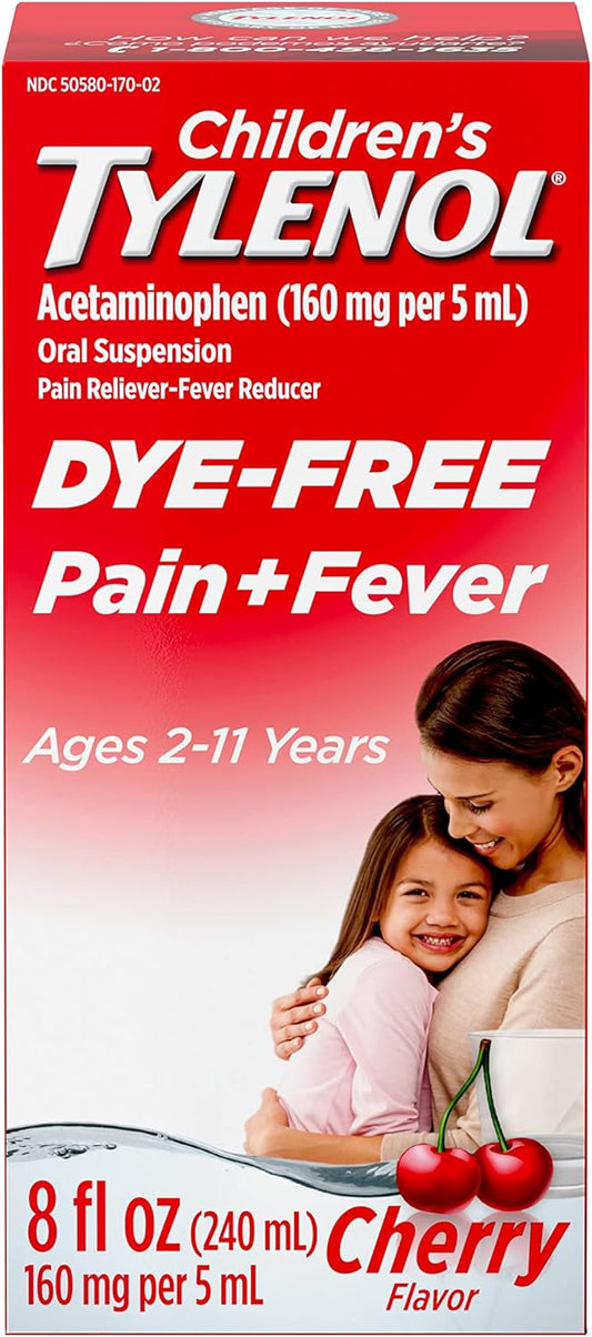 CHILDREN'S PAIN & FEVER REDUCER: Children's Tylenol Liquid Oral Suspension is made with a dye...