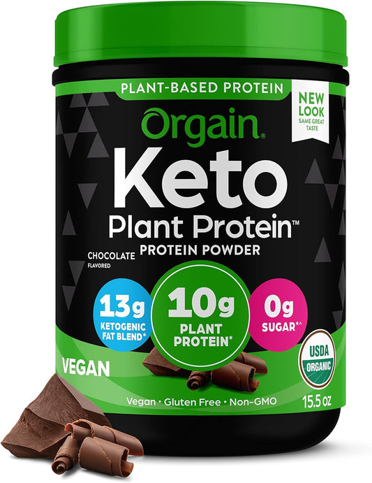 BULLET POINTS : 1 > Includes 1 (0.97 Pound) Orgain Chocolate Keto Plant-Based Protein Powder...