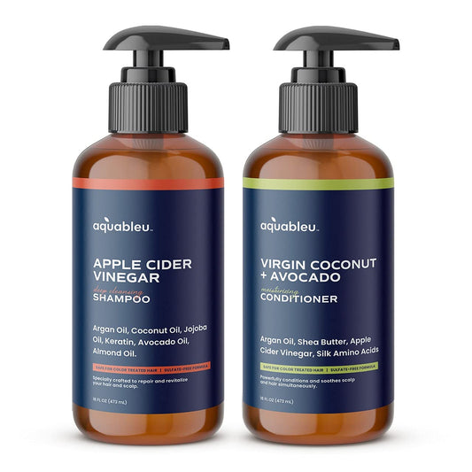 Apple Cider Vinegar Shampoo and Virgin Coconut & Avocado Conditioner Set - Clarifying and Restorative...