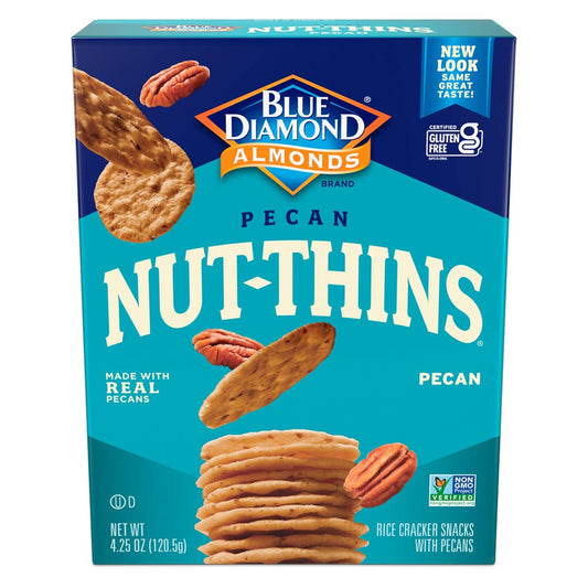 Contains twelve 4.25-ounce boxes of Blue Diamond Almonds Pecan Nut-Thins A crunchy gluten free cracker...