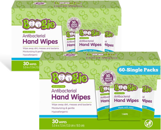 Antibacterial Hand Wipes By Boogie, Alcohol Free, Hypoallergenic And Moisturizing Aloe, Hand Wipes For Kids...