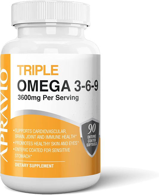 APRAVIO Triple Omega 3-6-9 Fish Oil, Omega Supplement for Adults, Essential Fatty Acids, Non-GMO, 90ct...