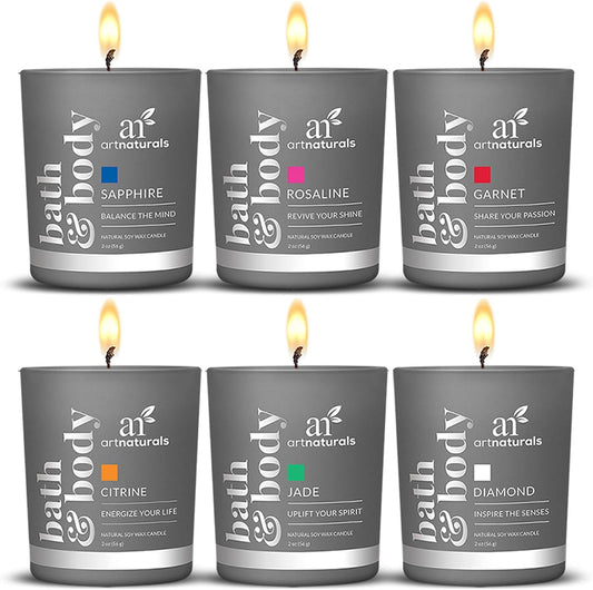 Set Of Six 2:Oz. Scented Candles Features Citrine (Tropical/Citrus), Garnet (Sweet Pea/Spice), Sapphire (Honeydew/Frankincense), Diamond...