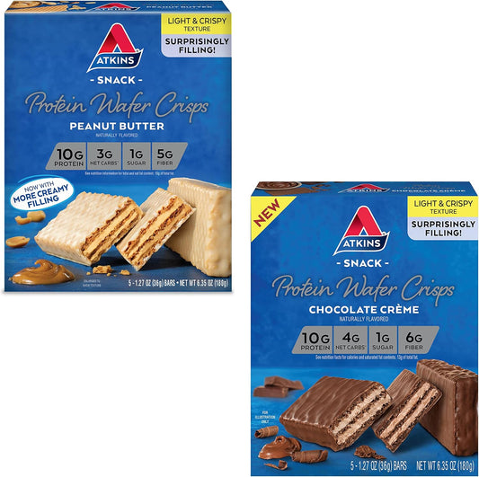 Peanut Butter & Chocolate Crème Protein Wafers. This Is Today’S Atkins. Our Crisp And Crunchy...