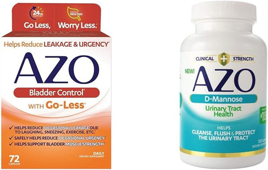 Product 1: WORRY LESS AZO Bladder Control with Go-Less helps reduce occasional bladder leakage from...