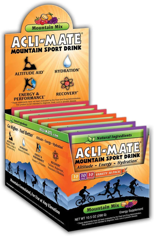 DESCRIPTION : Acli-Mate Mountain Sport Drink - Altitude Sickness Aid - Variety 30 Pack Carton
