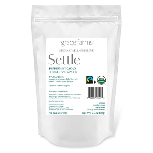Grace Farms Organic SETTLE Wellness Tea Blend (50 Sachet Pouch) | Peppermint Cacao | Relaxing...
