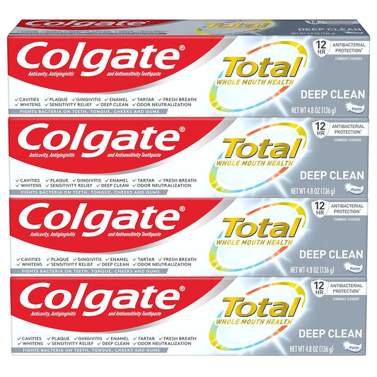 Includes Four (4) 4.8 Oz Tubes Of Colgate Total Deep Clean Toothpaste, Teeth Whitening Toothpaste...
