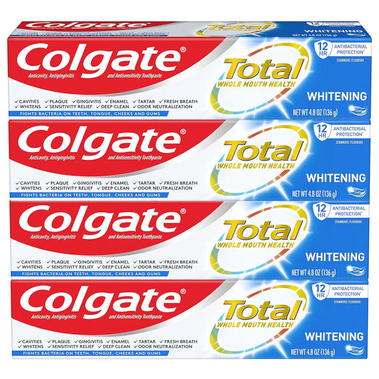 Includes Four (4) 4.8 Oz Tubes Of Colgate Total Whitening Toothpaste Gel, Teeth Whitening Toothpaste...