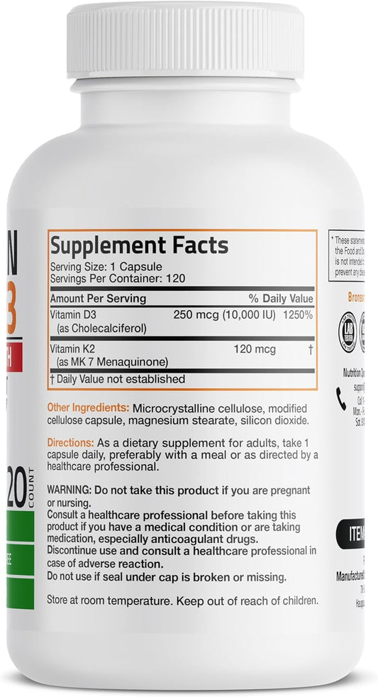 High Quality & Great Value: Bronson Basics K2 + D3 Provides 90 Mcg Of Vitamin...