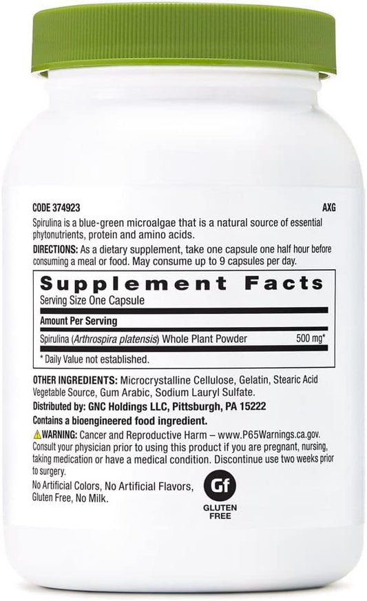 Gnc Superfoods Spirulina Capsules: Each Capsule Provides 500Mg Of Spirulina Whole Plant Powder Phytonutrients And...