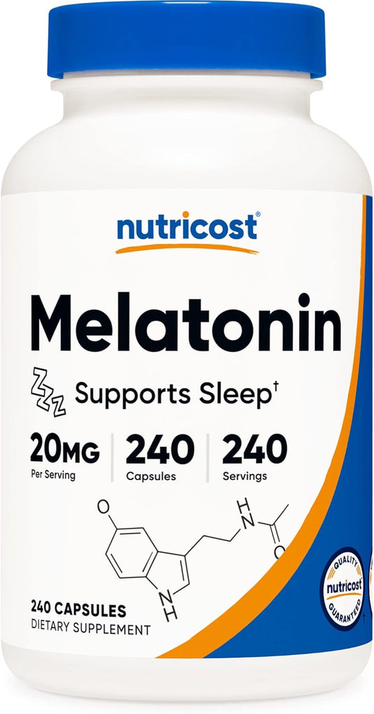 Melatonin by Nutricost uses only high quality melatonin. Each bottle contains 240 capsules of 20mg...