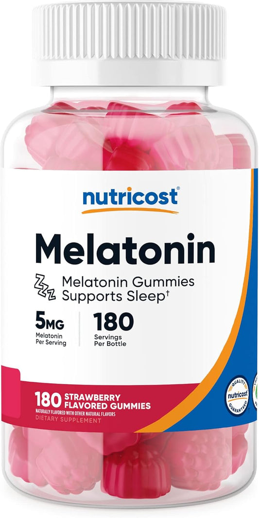 Nutricost Melatonin 5mg, 180 Gummies, Strawberry avored - Gluten Free, Non-GMO, No Corn Syrup
