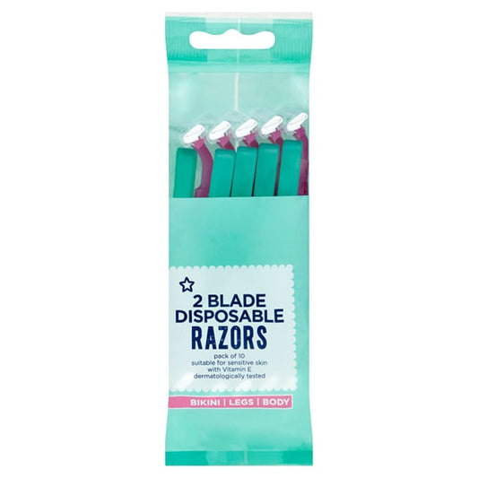 A Twin Blade Disposable Razor With Lubricating Strip With Vitamin E These Disposable Twin Blade...