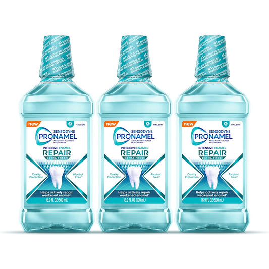 Three 16.9 Fl Oz Bottles Of Sensodyne Pronamel Intensive Repair Mouthwash; Helps Actively Repair Weakened...