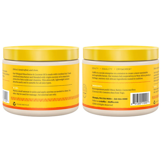 Alaffia Whipped Shea Butter and Coconut Oil, for Smooth, Soft Skin, Unscented 4 Oz
