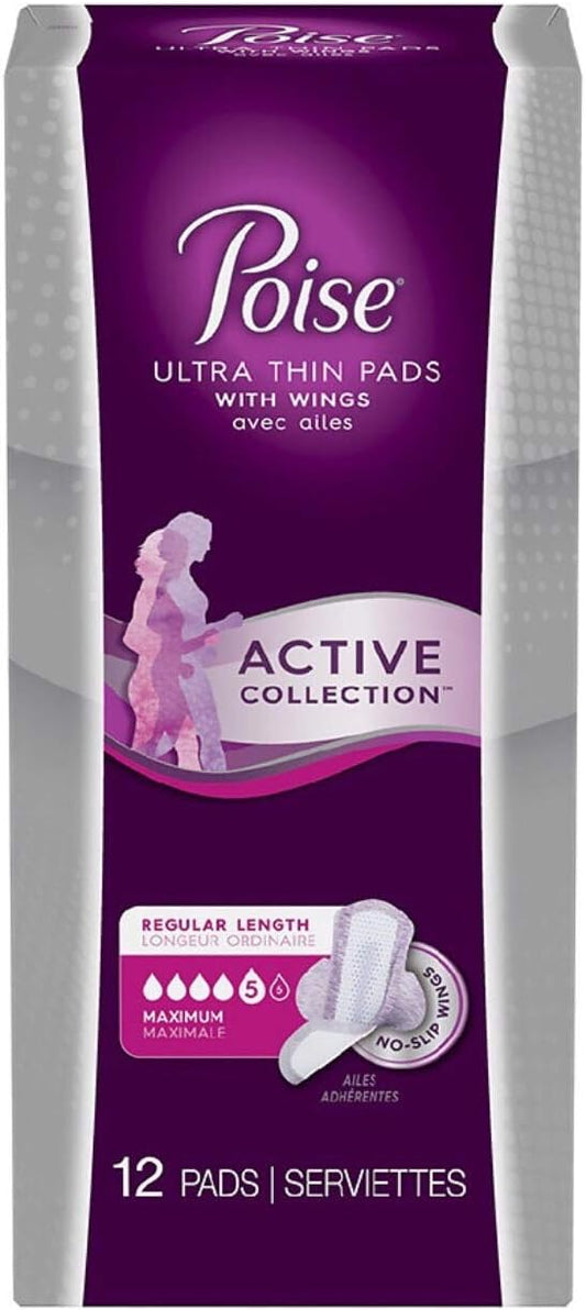 Poise Ultra Thin Pads with Wings Active Collection (Maximum - 12 Pads)