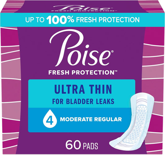 Poise Ultra Thin Incontinence Pads, Moderate Absorbency, Regular Length, 60 Pads; Hsa/Fsa-Eligible In The U.S....
